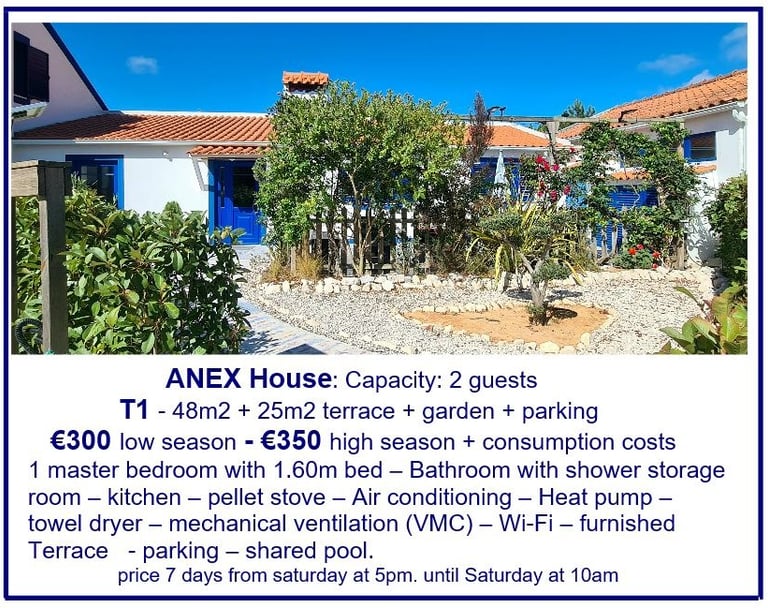 The sea or the lagoon in 10km, Peniche /Baleal 20km, Nazaré 25km, Lisboa 75km. Several touristic houses and B&B are available, habitable all year long, and compliant with accessibility standards PMR , has a terrace, garden, parking and a common pool house area of 400M2.